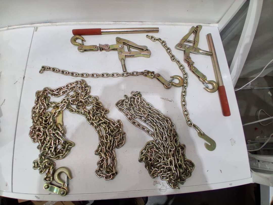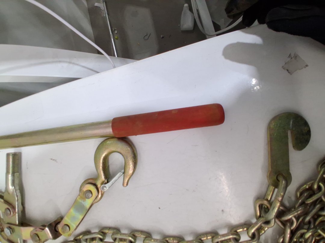 Small marks and scuffs likely due to nature of item and shipping. One of the chains has both of the hooks detached, likely able to be repaired/connected with replacement chains.