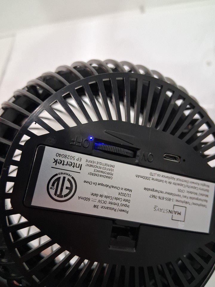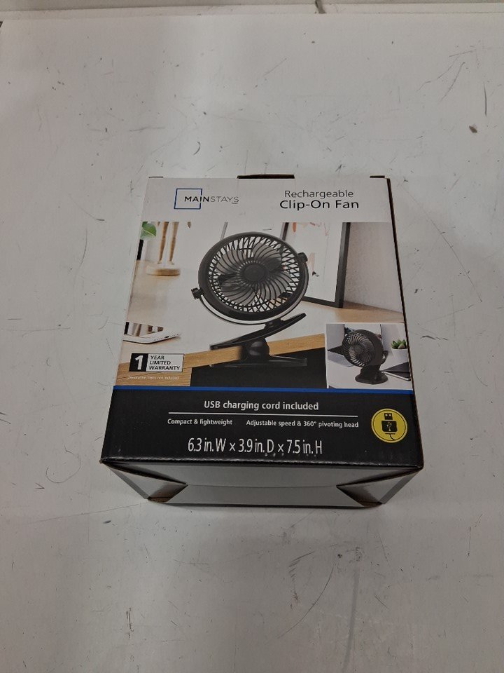 Mainstays Rechargeable portable Clip Fan - 7.5'' - Black (model- cf05)