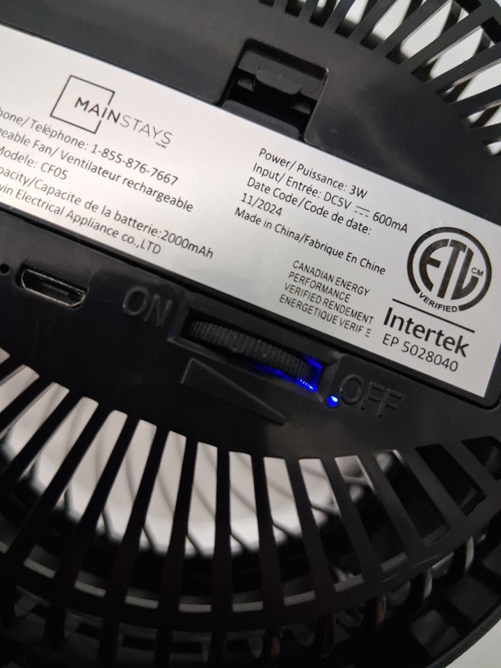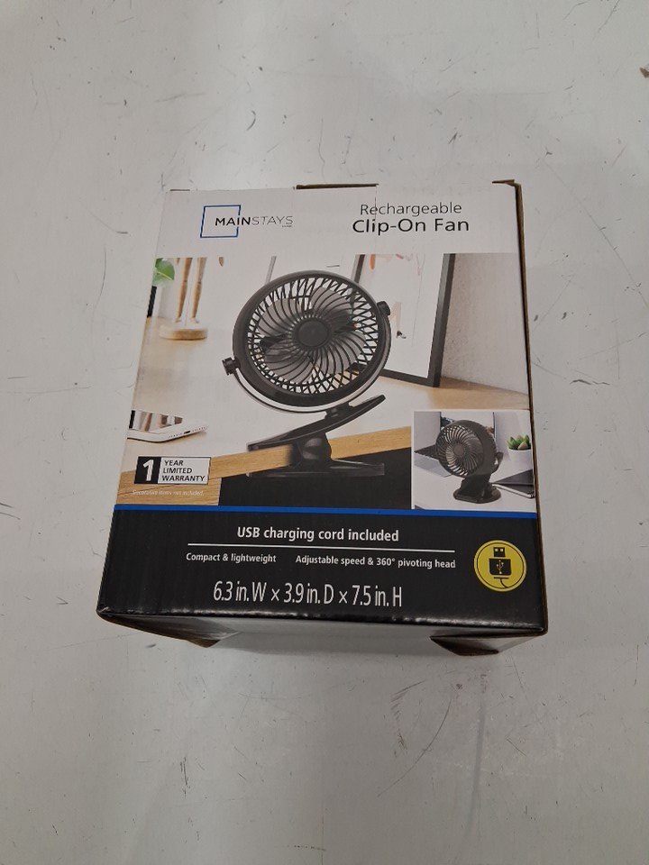 Mainstays Rechargeable portable Clip Fan - 7.5'' - Black (model- cf05)