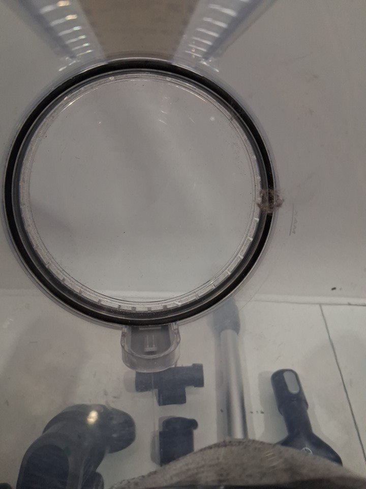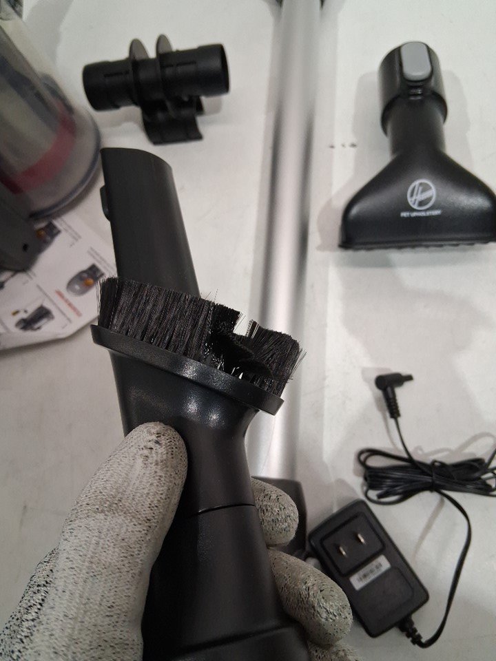 Bristles damaged, signs of use, dust and debris. Tested for power.
