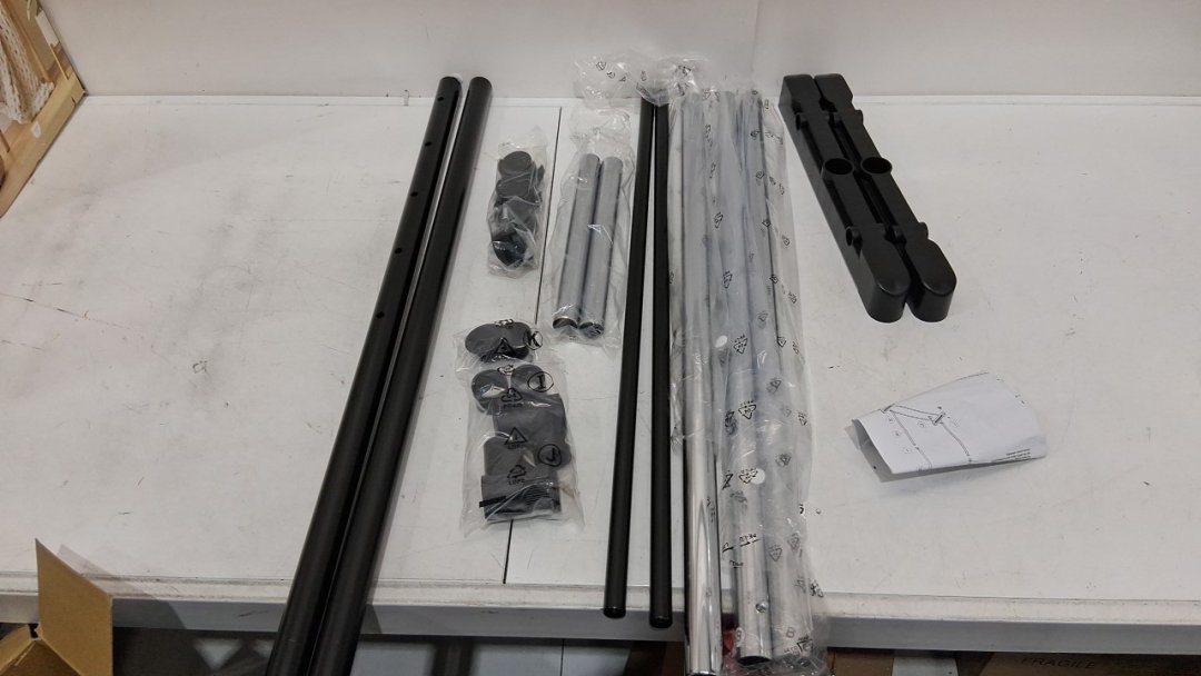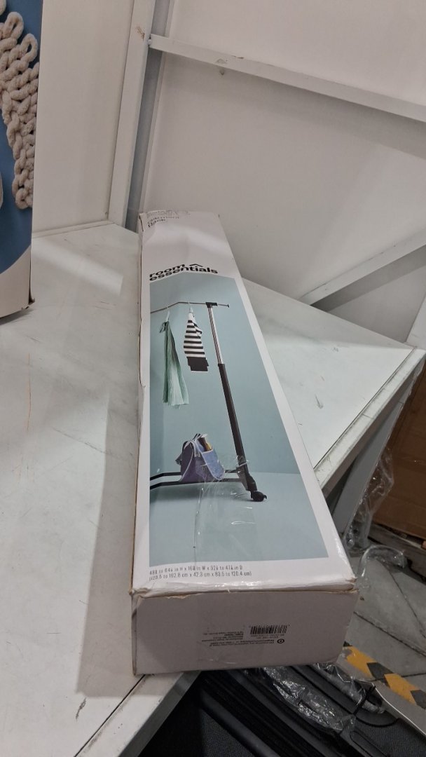 room essentials Adjustable Single Rod portable steel Garment Rack - 48" to 64" - 22lb max - black/silver (MODEL:0633)