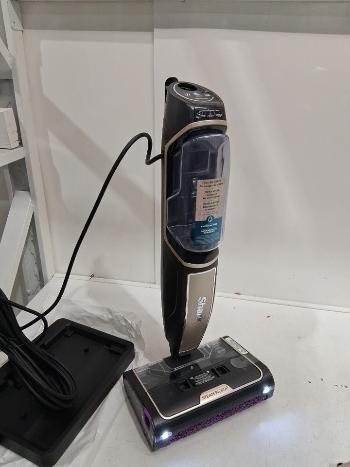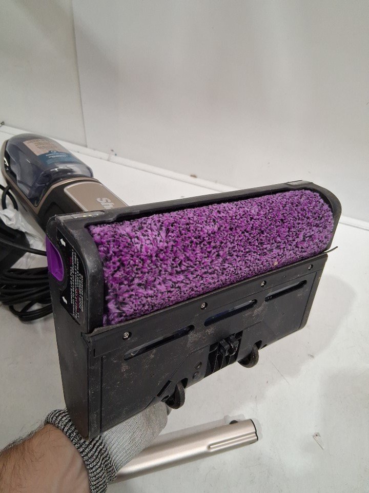 Tested for power. Signs of use on mop roller at bottom of unit. moved bristles and debris. overall good condition.