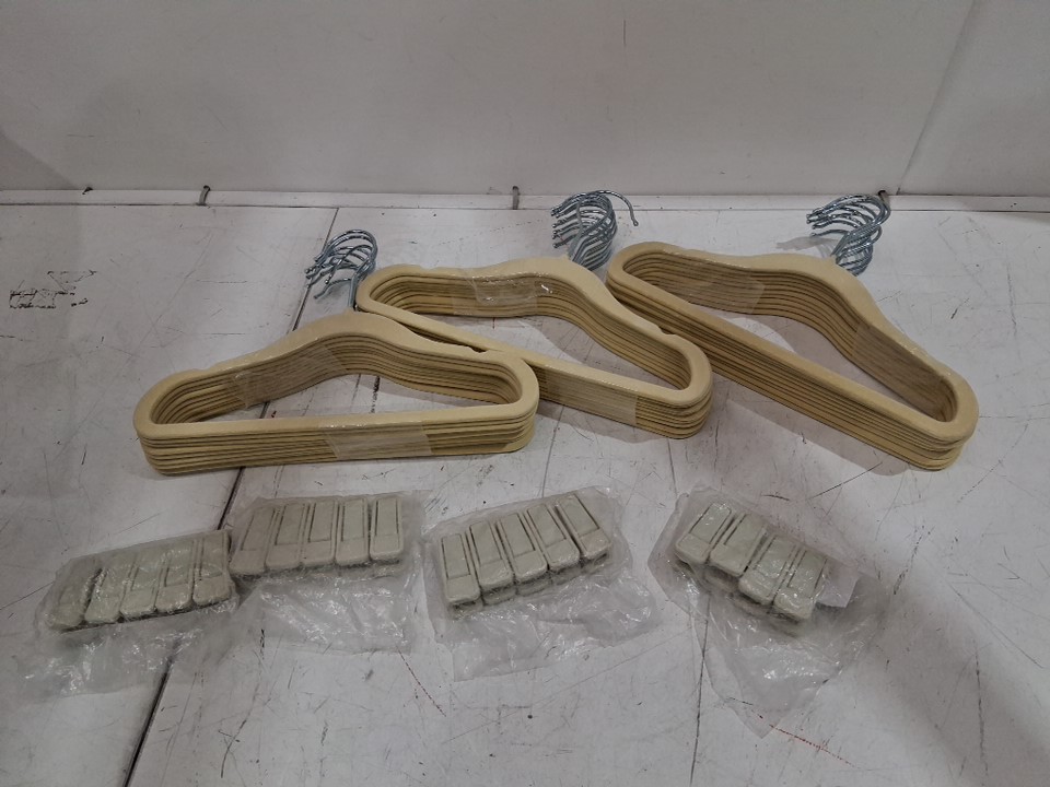 32PK KIDS AMAZON BASICS VELVET HANGERS with clips - BEIGE