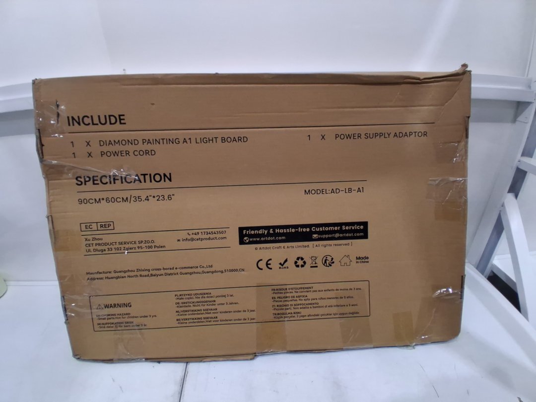 Item appears to be new with protective film still on product, film appears to have mild scuffs/indents in it, but product underneath looks protected. Item does NOT include DC power adapter, can be replaced through most online retailers. https://www.amazon.ca/Adapter-Bluetooth-Speaker-Universal-Repalcemnet/dp/B0C6QRJFY7/ref=asc_df_B0C6QRJFY7?mcid=2b09f5870bca3803a307fb08346dc8d6&tag=googleshopc0c-20&linkCode=df0&hvadid=706724917104&hvpos=&hvnetw=g&hvrand=3145087901583138378&hvpone=&hvptwo=&hvqmt=&hvdev=c&hvdvcmdl=&hvlocint=&hvlocphy=9000801&hvtargid=pla-2245260104053&psc=1&hvocijid=3145087901583138378-B0C6QRJFY7-&hvexpln=0&gad_source=1