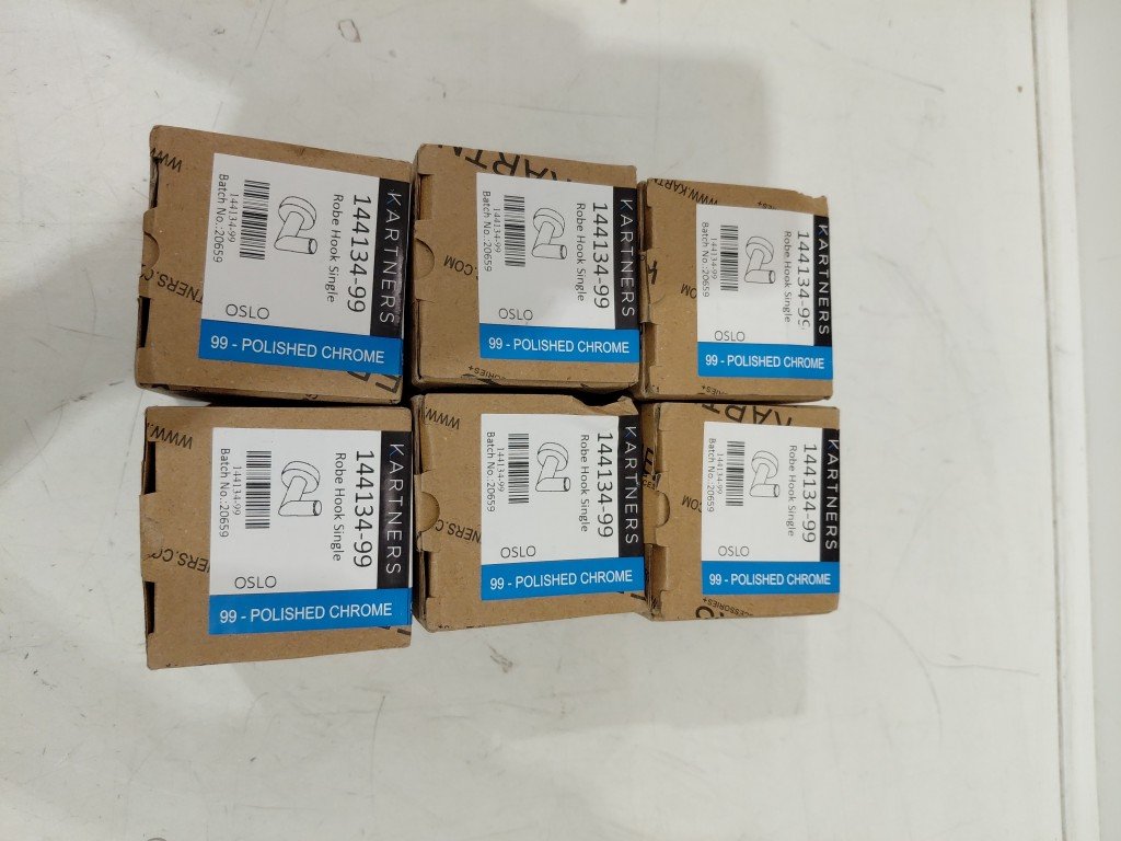 6 karnters Oslo Single Prong Robe Hook - polished chrome (model: 144134-99)