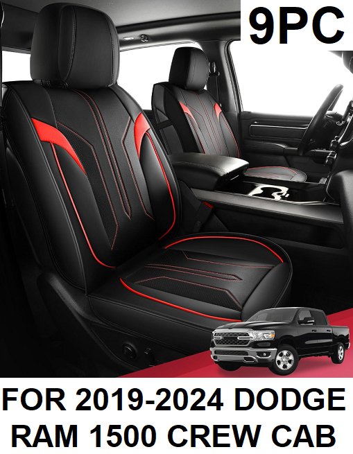 9PC FREESOO FAUX LEATHER CAR SEAT COVERS FOR 2019-2024 DOGE RAM CREW CAB - BLACK/RED