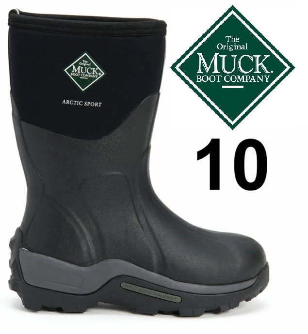 MEN'S THE ORIGINAL MUCK BOOT COMPANY ARCTIC SPORT MID BOOTS - SIZE 10 - BLACK (model:asm000a)