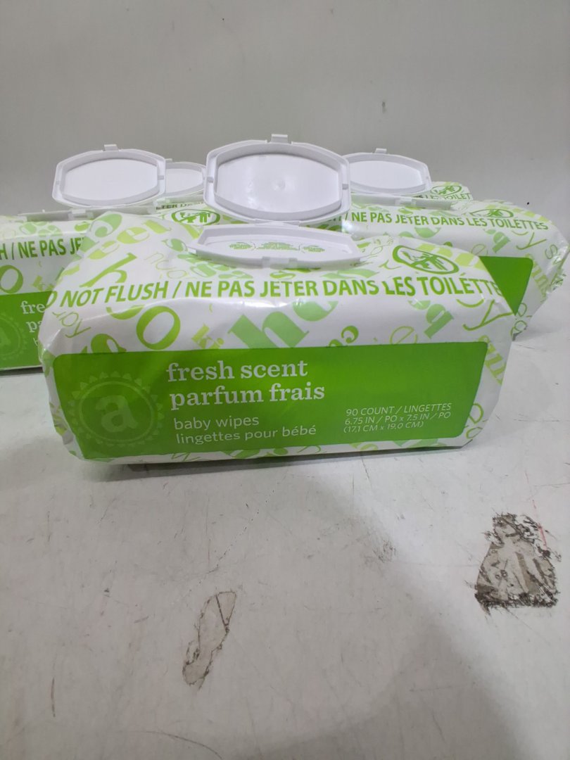 5PK (450TOTAL) Amazon Elements Baby Wipes WITH FLIP TOP PACK - 14.31" x 8.31" x 8.63" - 450 TOTAL - FRESH SCENT