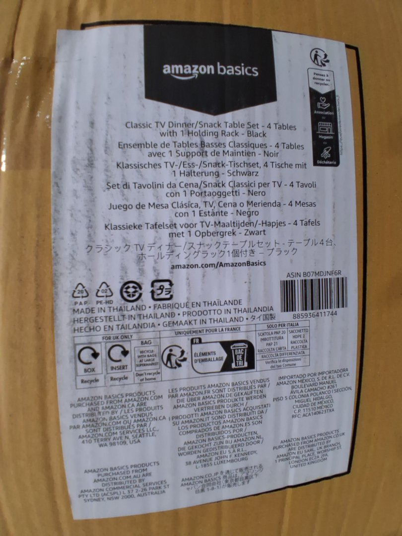 4PK Amazon Basics Portable TV Dinner Rectangular Folding Tray Table with Storage Rack - 26" - black