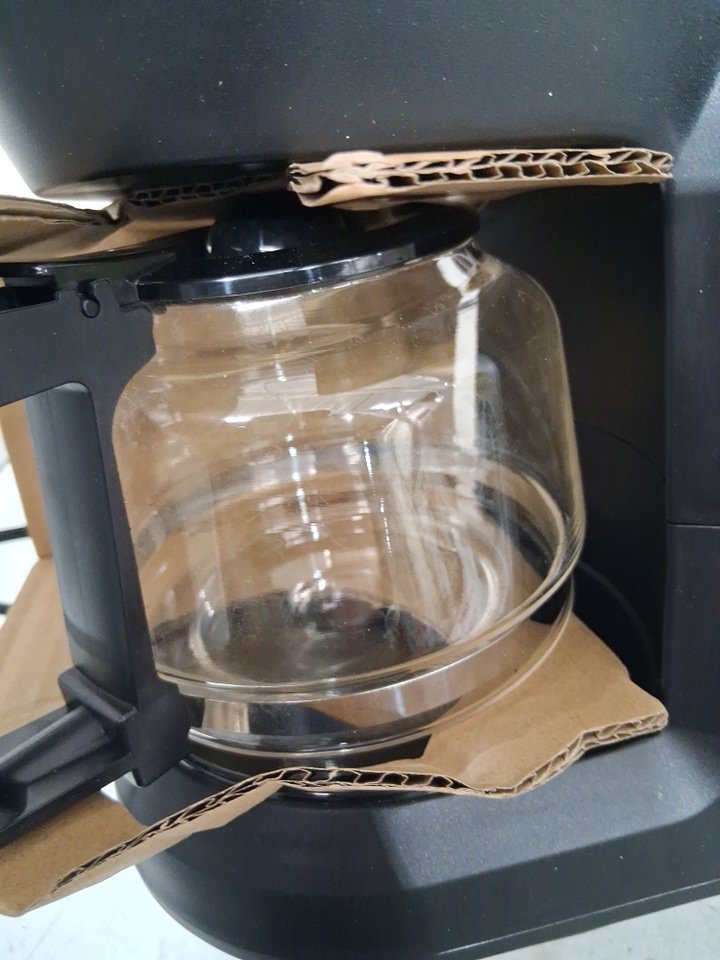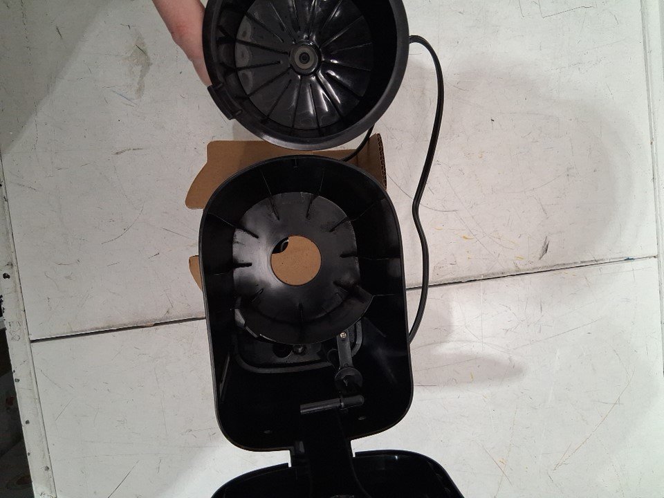 Tested for power, working. Signs of light use, some coffee grounds in top and water marks in pot