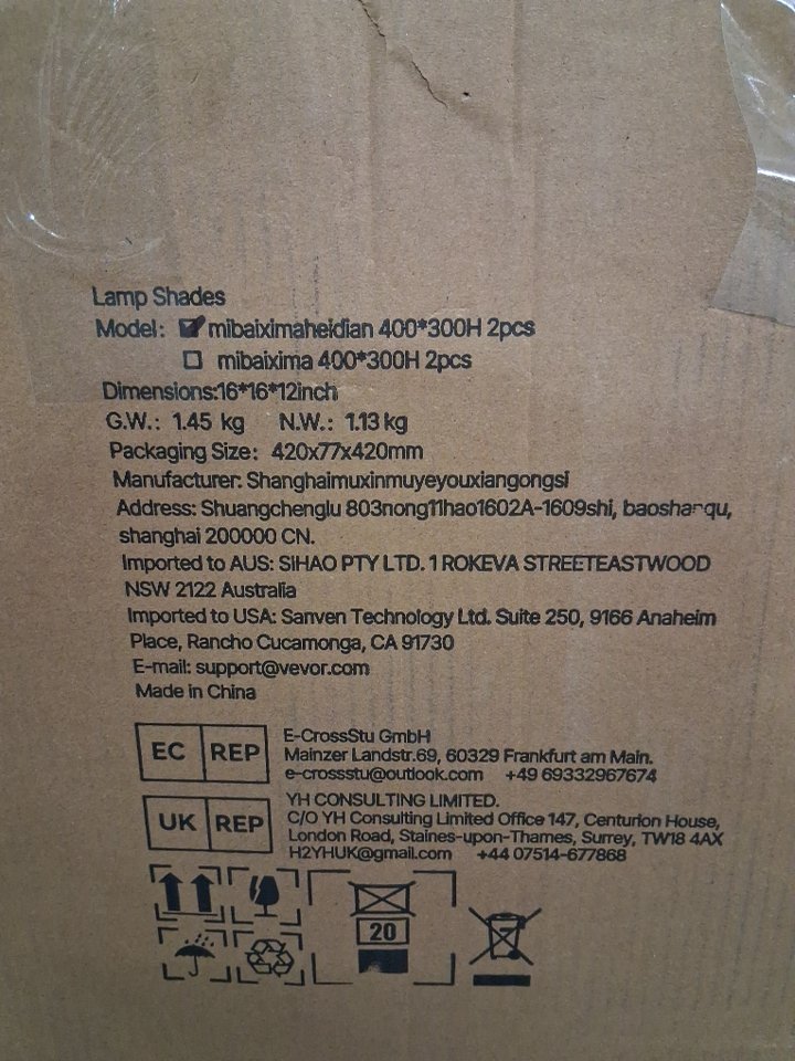 2pk vevor drum lamp shades - 12" x 16" - white (model: ‎mibaiximaheidian 400*300H 2pcs)