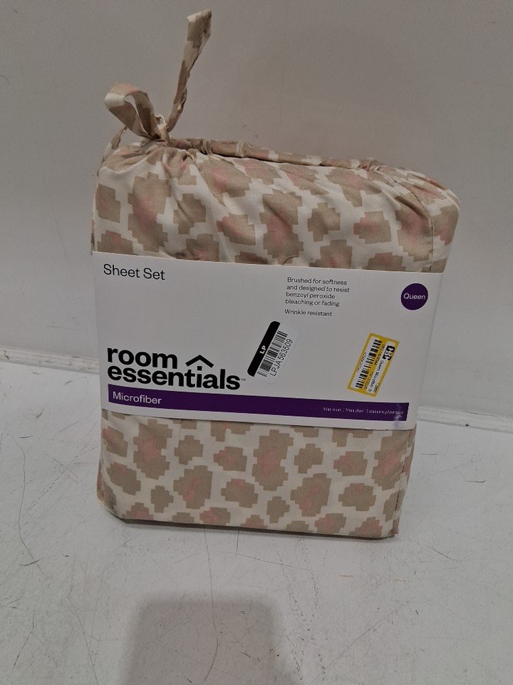 4pc room essentials Microfiber Sheet Set - QUEEN - Pink LEOPARD