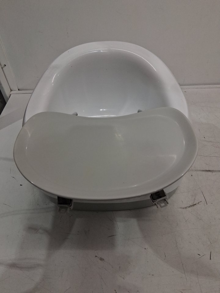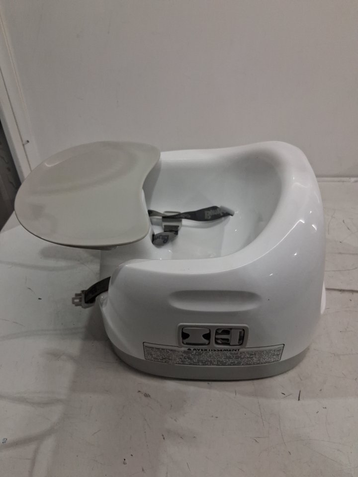 Please note: • The seat shows signs of previous use with smudging on the back rest and food residue in the food track connector, we recommend washing before use. See photos. • The foam insert for the seat is missing. Replacements can be purchased from Bumbo at https://bumbousa.com/products/multi-seat-foam-insert