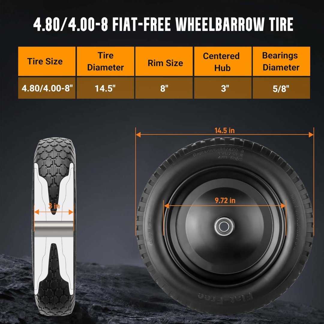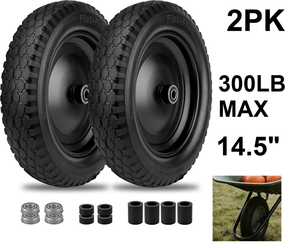 2PK NISHCON Wheelbarrow solid Tire Flat-Free rubber Wheel - 14.5" - 300LB MAX - Black