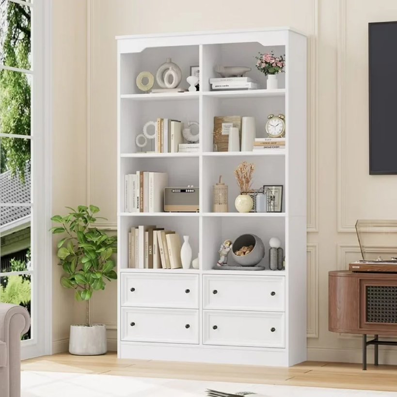 HOMFA Double Row 4-tier Bookcases Floor Standing - 11.60" x 38.60" x 70.90" - WHITE