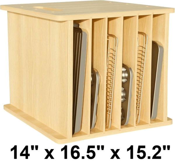 sawjut 7-Tier Wooden Tray Dividers for Cabinets Cookie Sheet Organizer - 14" x 16.5" x 15.2" - wooden/brown
