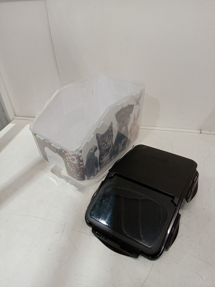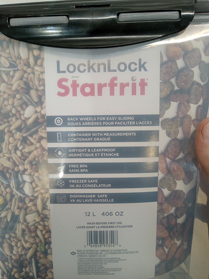 locknlock by starfrit airtight pet food container with wheels - 12l - black/clear
