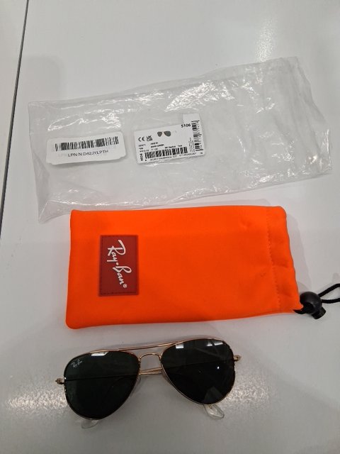 juniors' ray-ban aviator metal sunglasses -52▢14-125 - polished arista gold/Dark Green lens (223/13) - (model: rj9506s).
