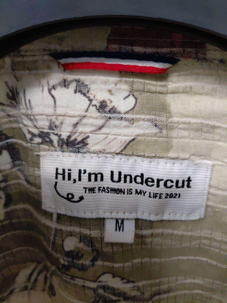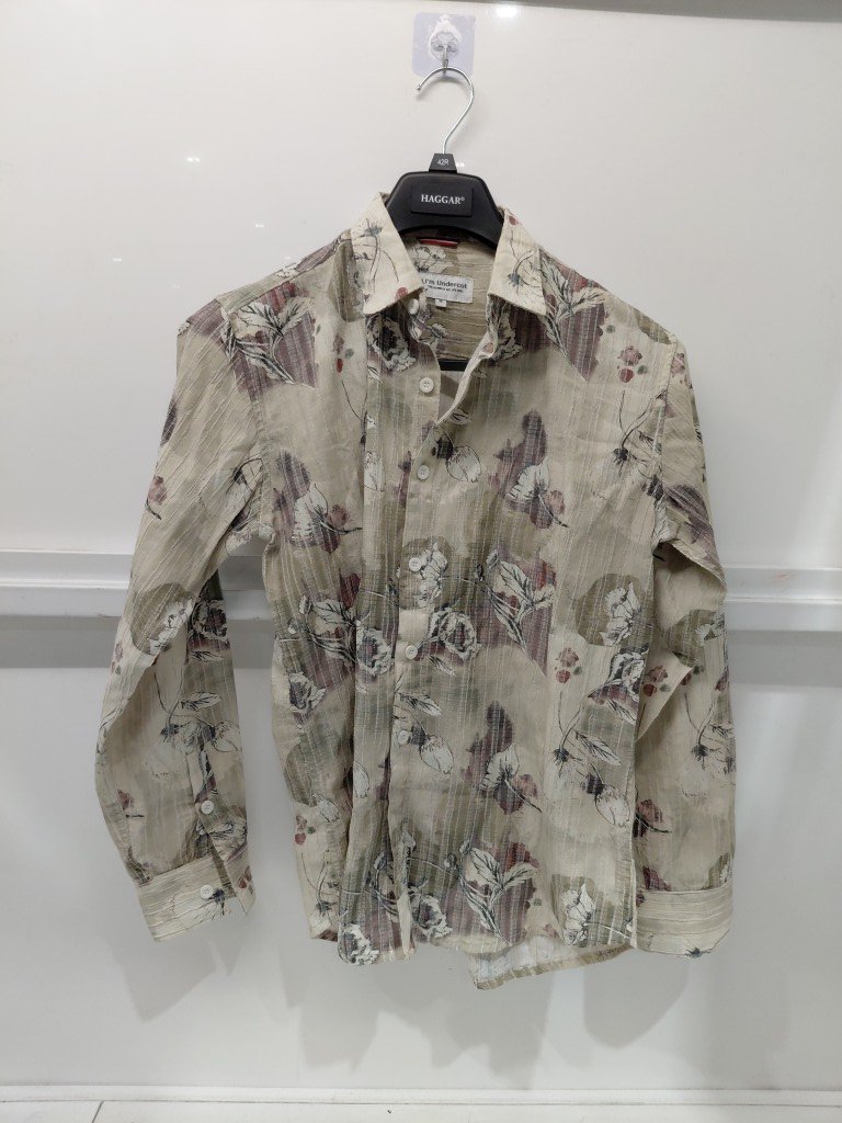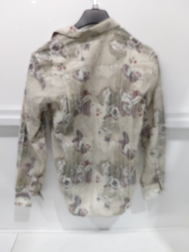 MEN'S BUTTON UP LONG SLEEVE PRINTED SHIRT - MEDIUM - GREEN/BEIGE MUTLI-COLOUR