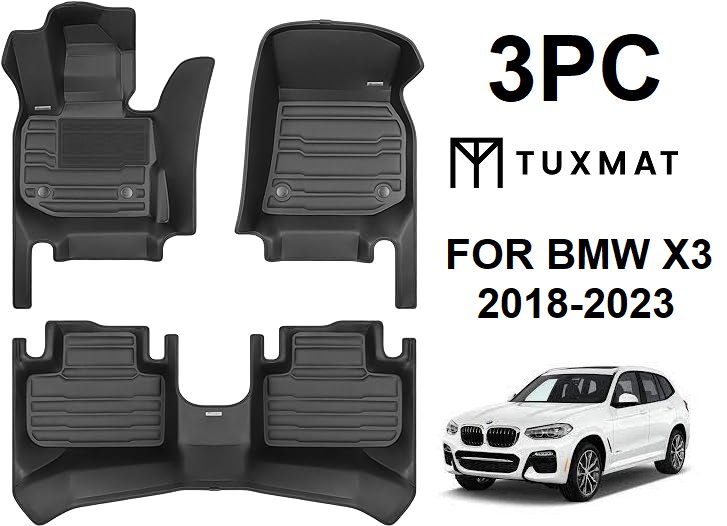 3PC tuxmat custom maximum coverage all weather car mats - for bmw x3 2018-2023 models - black (model: 8416)