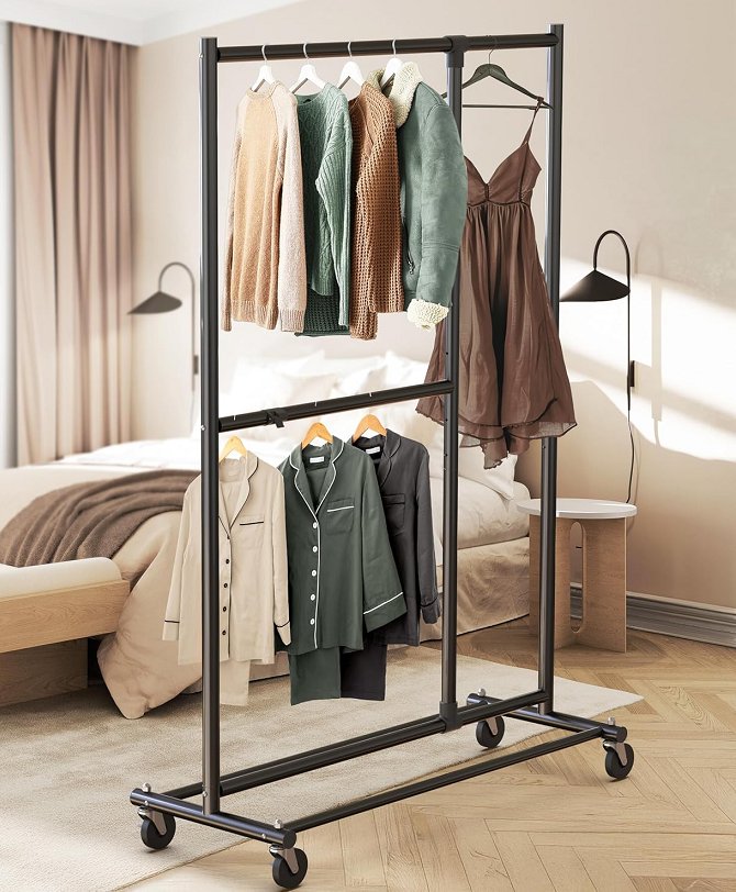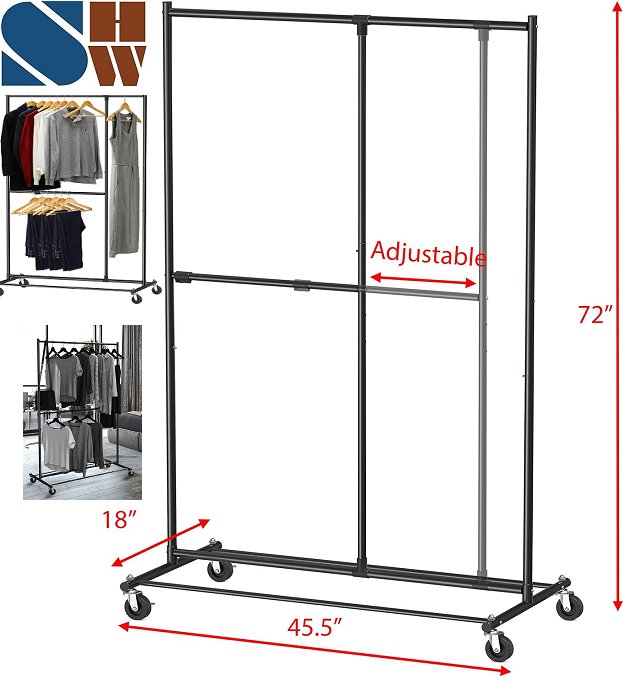 SimpleHouseware Clothing Rack - Dual Bar Adjustable Garment Rack - 72" - bLACK - (mODEL: bo-07e-k#hf02)