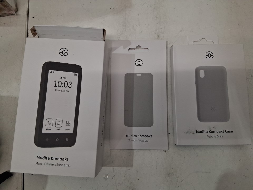 mudita kompakt minimalist phone - e-ink screen | case & screen protector - black