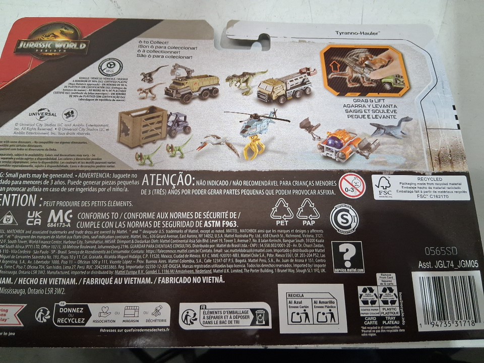 kid's Mattel Matchbox Jurassic World RebirthTyranno-Hauler Vehicle and Figure set-assorted colours (model:jgm05)