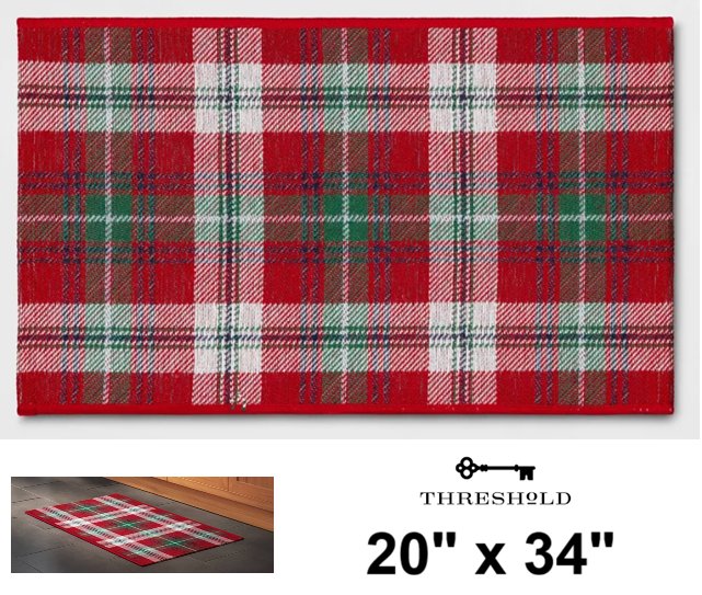 THRESHOLD NON-SLIP KITCHEN RUG - 20" x 34" - Christmas Red Plaid