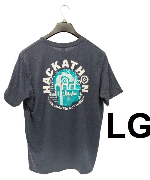 unisex 2025 hackathon " work smarter not harder" short sleeve t shirt - large - navy