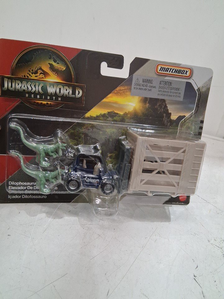 kid's Mattel Matchbox Jurassic World Rebirth Dilophosaurus Lifter Dinosaur Collection Vehicle and Figure set-assorted colours (model:jgm09)