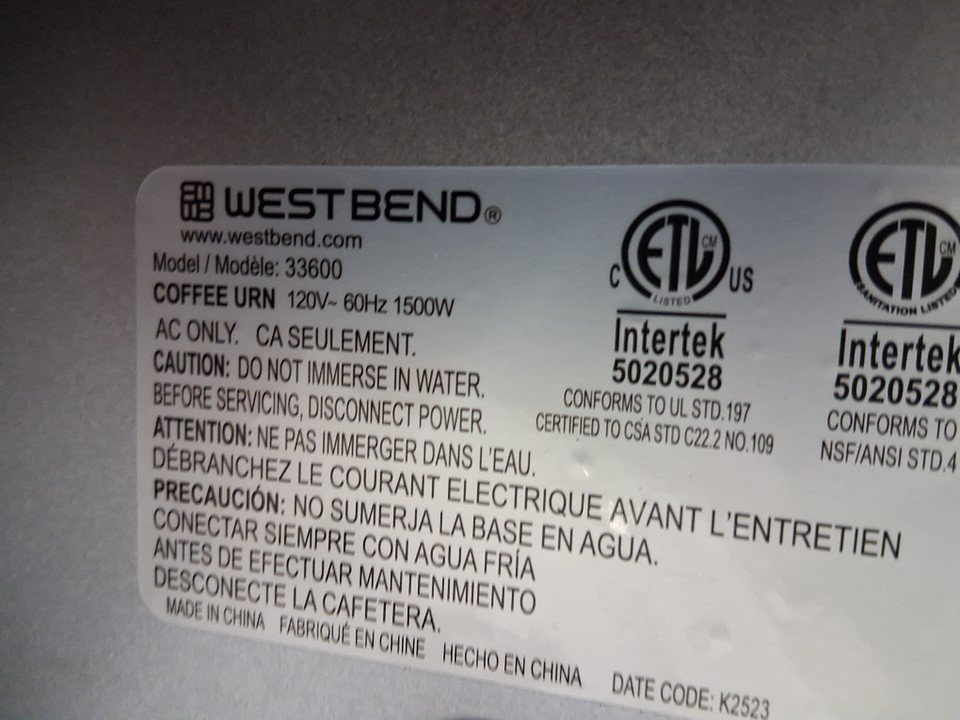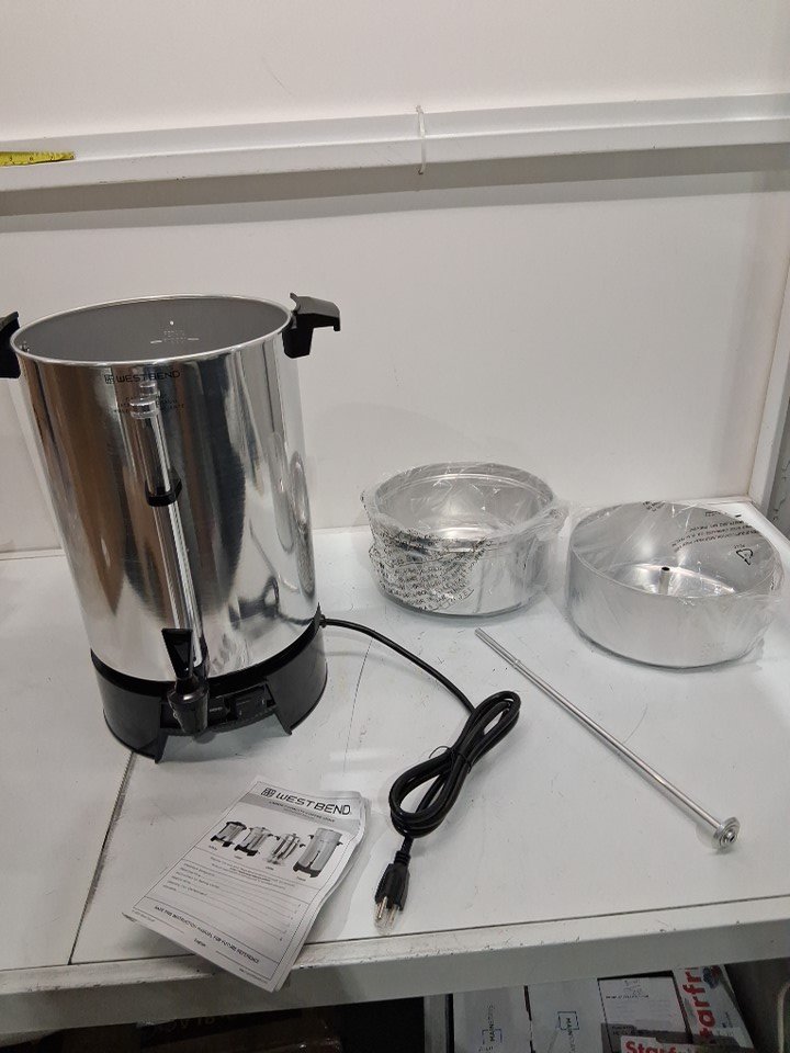 WESTBEND HIGHLY POLISHED COFFEE URN - 100 CUPS - SILVER - (MODEL: 33600)