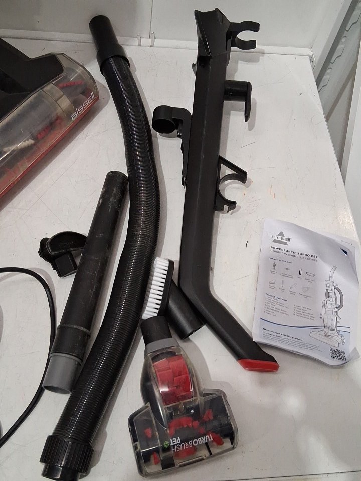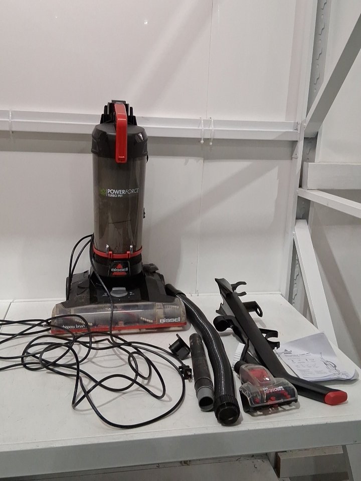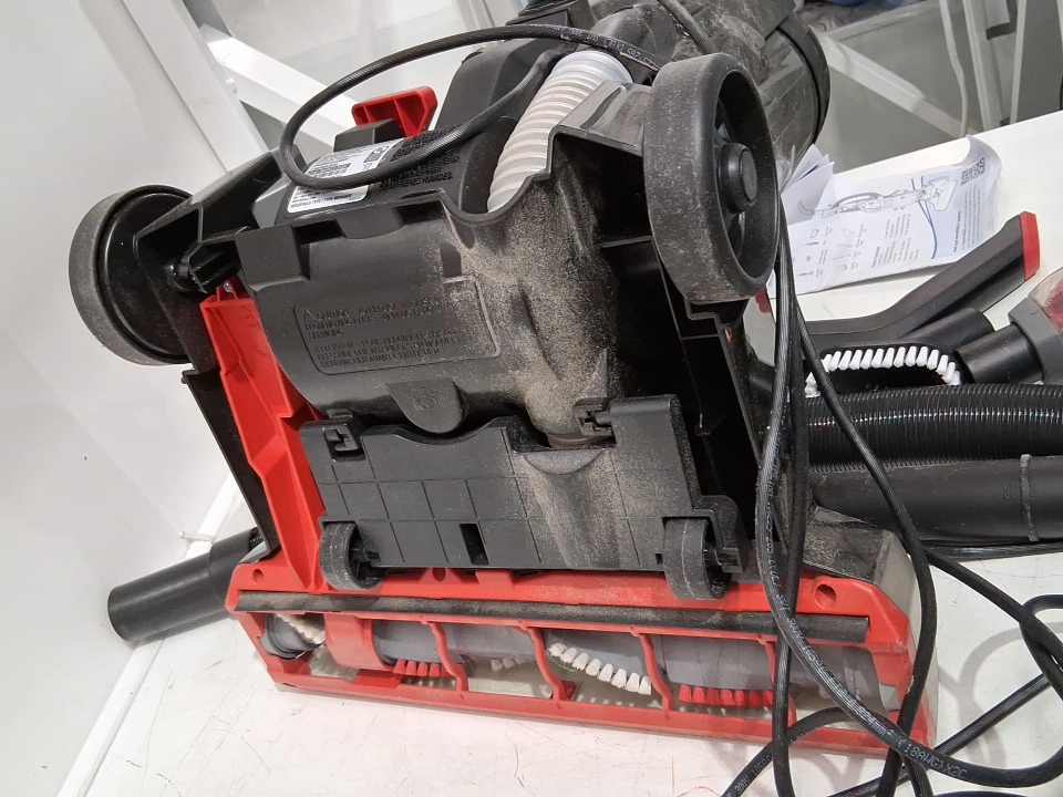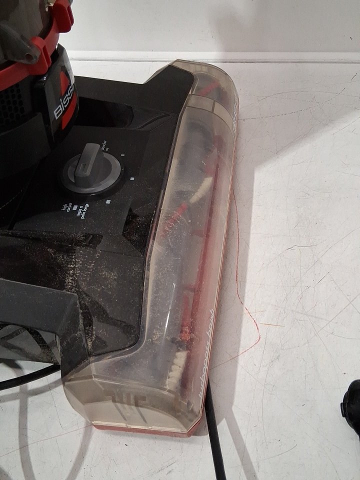 It has dust and dirt stuck in it, missing crevice tool and lower cord wrap. tested for power only