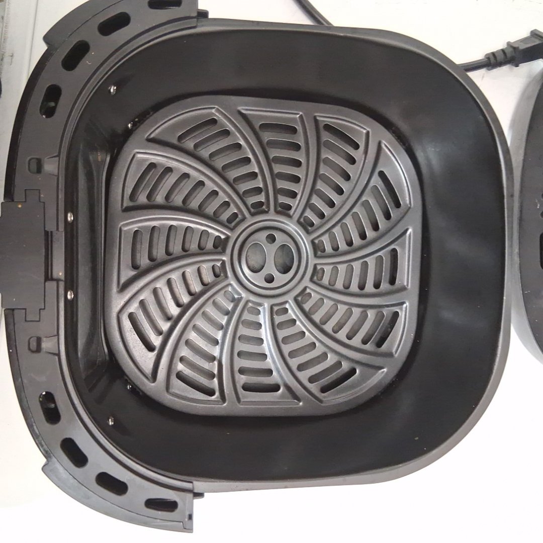 There are light spots of grease and food marks inside the basket and on the grate. Tested for power.