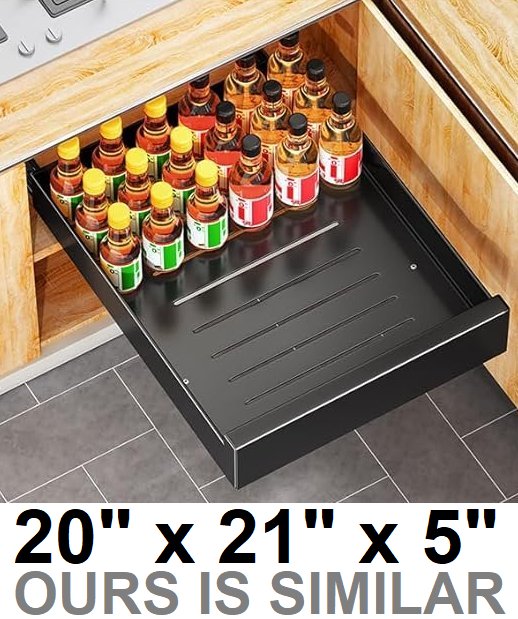 Pull Out Cabinet Organizer with inserts - 20" x 21" x 5" - 55lbs max - BLACK