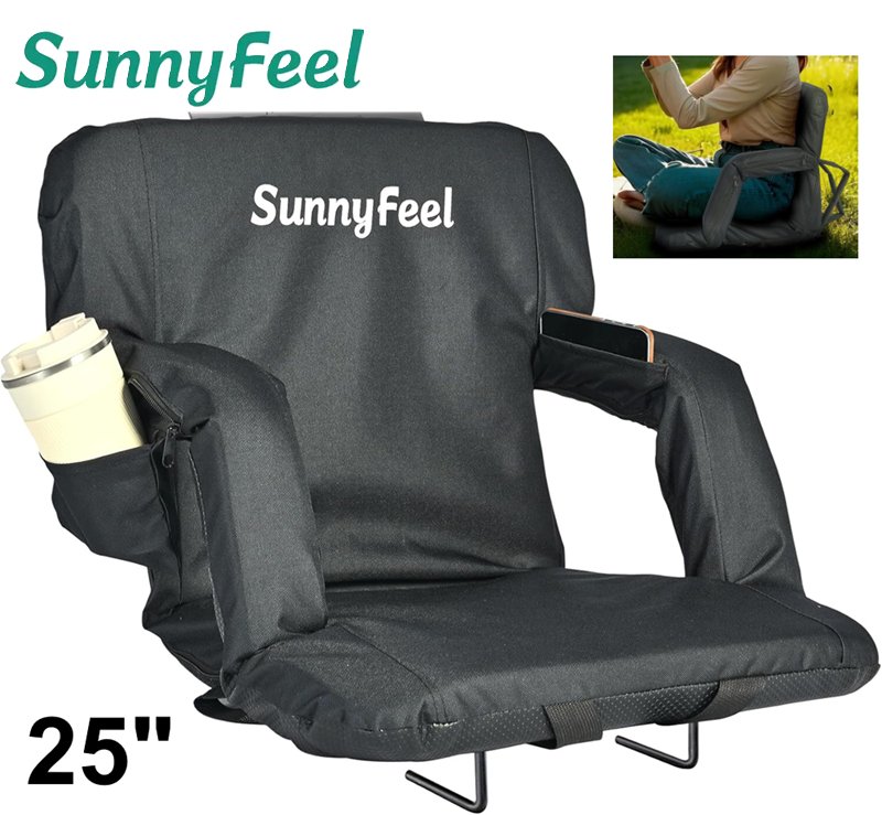 SUNNYFEEL Extra wide Stadium Seat with Back Support Cushion with hidden pockets - 25" x 33" - Black (Model: SBOS0001)