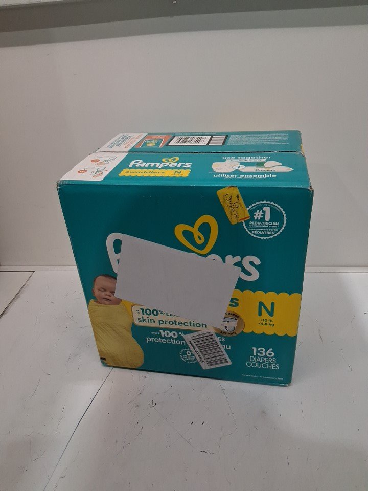 136PK PAMPERS SWADDLERS DIAPERS - NEWBORN SIZE 0
