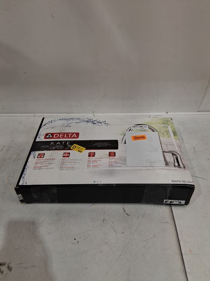 DELTA FAUCET KATE SINGLE-HANDLE KITCHEN SINK FAUCET WITH PULL DOWN SPRAYER & SOAP DISPENSER - MAGNETIC DOCKING SPRAY HEAD - CHROME (MODEL: 16970-SD-DST)