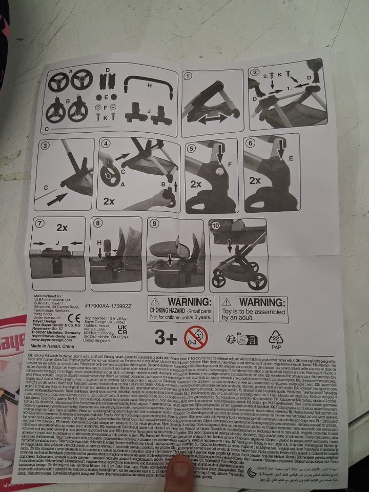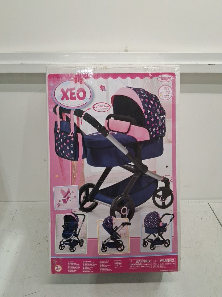 Kids Bayer xeo dolls pram/stroller with bag. Adjustable/reversible handle - Dolls up to 18" - Dark blue pink star - (model: 17016AA)