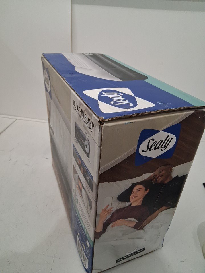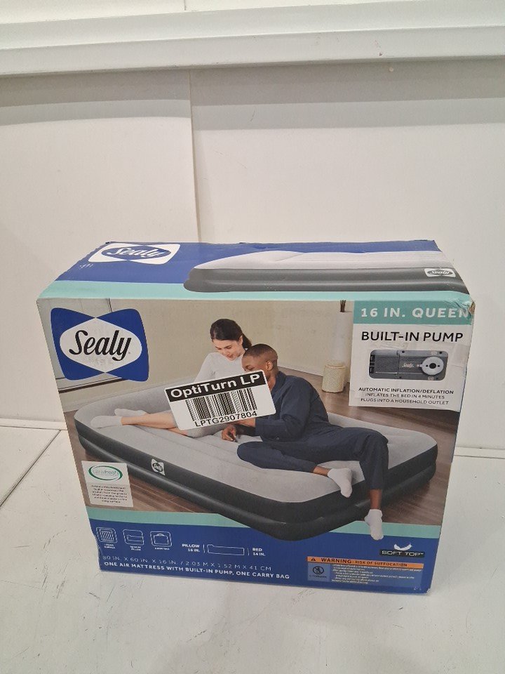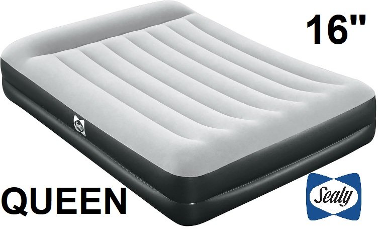 sealy Internal I-Beam Airbed with Built-In air pump and pillow headrest - queen/16" - black/white (model: 94052e)