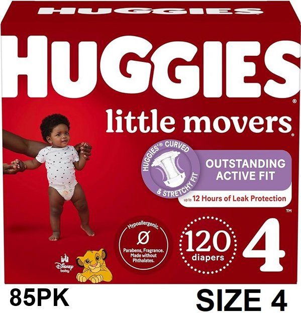 85PK HUGGIES LITTLE MOVERS DISPOSABLE BABY DIAPERS - SIZE 4 - FOR BABIES 22LBS-37lbs - DISNEY LION KING