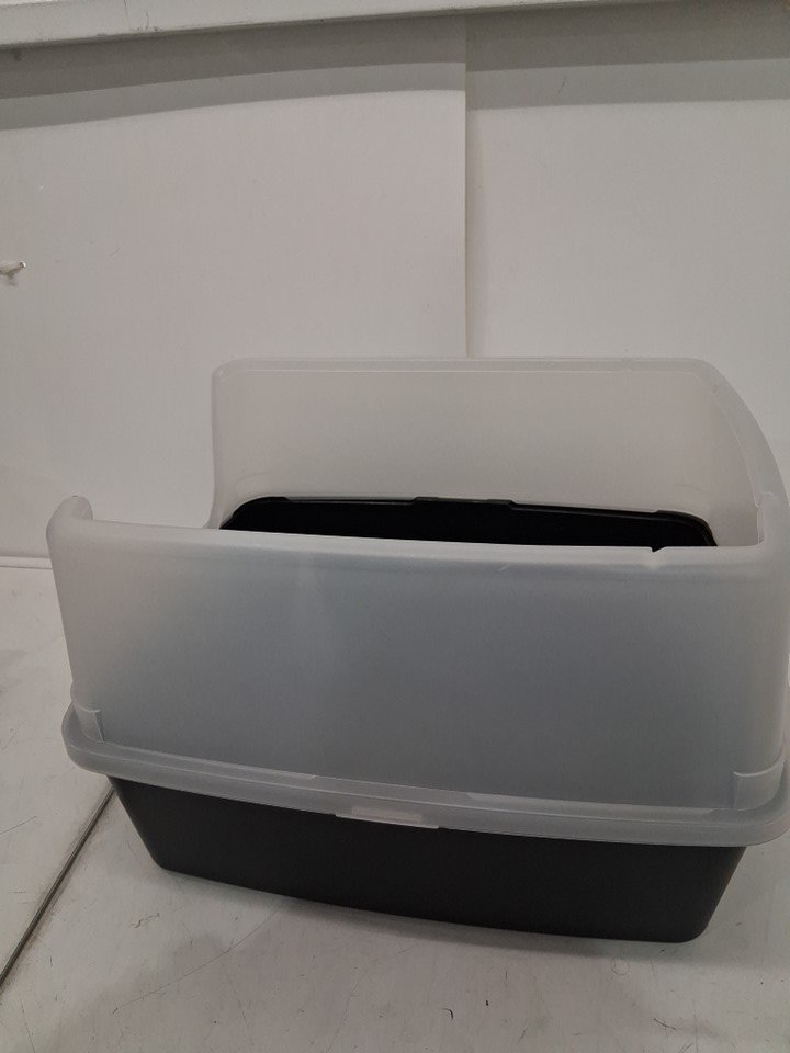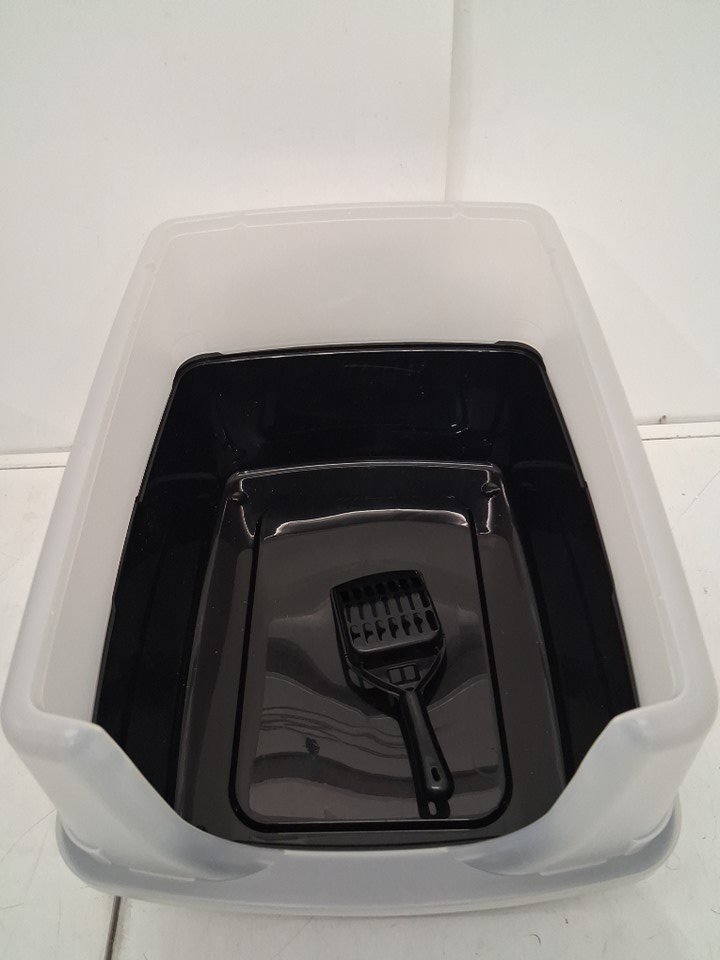 IRIS USA Large open top Cat Litter Box with scatter shield and scoop - 19" x 15" x 11.8" - grey/clear (model: 301755)