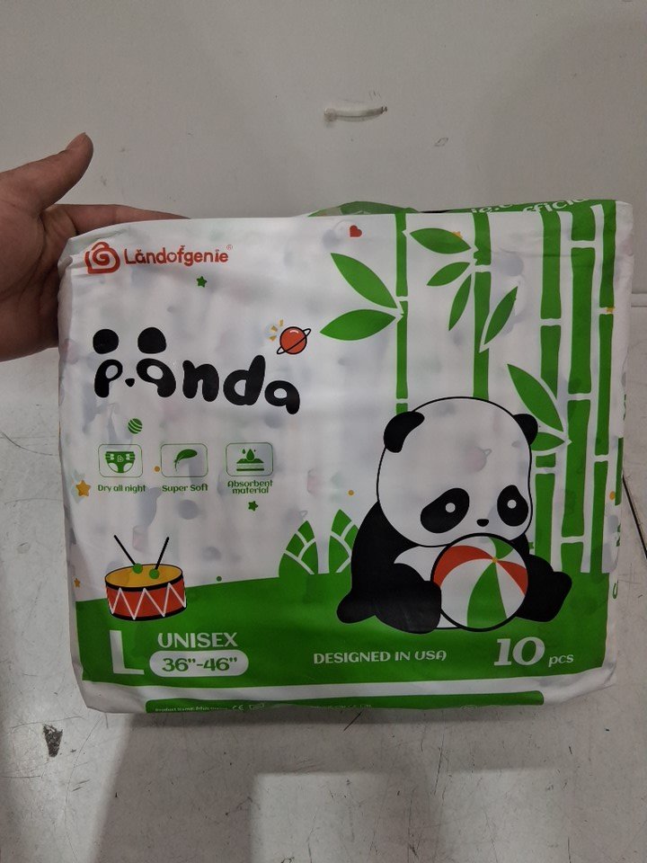 10PK ADULTS UNISEX Landofgenie Incontinence Diaper Briefs - LARGE - WHITE PANDA PRINT