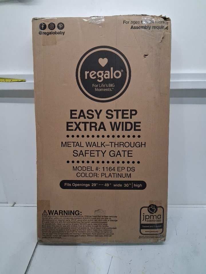 REGALO EASY STEP EXTRA WIDE METAL SAFETY GATE - 30" x 29" to 49" - platinum GREY (MODEL: 1164EPDS)