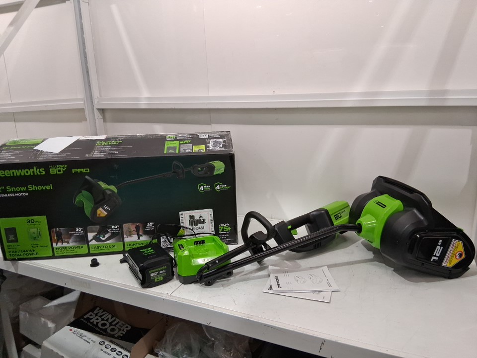 greenworks cordless pro snow shovel with battery - 12" - 80 volt - green / black (model: 2600602)