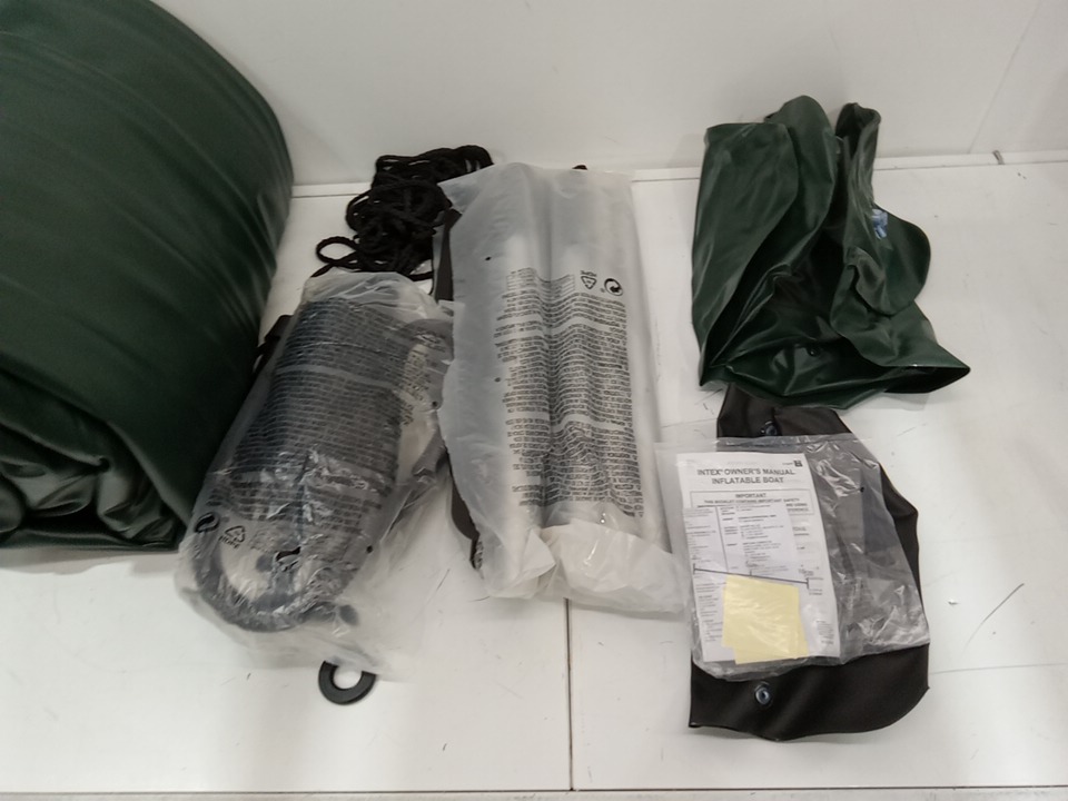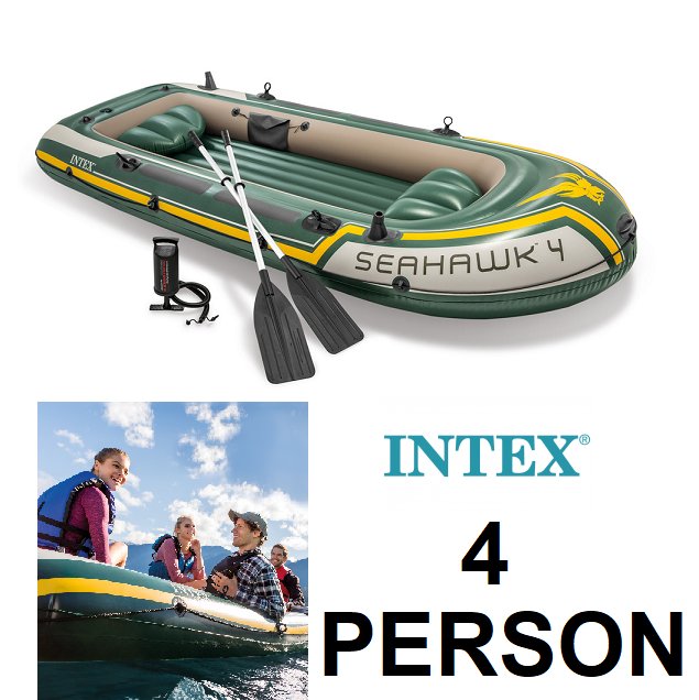 Intex Seahawk 4-Person Inflatable Fishing & Recreational Boat Set with Aluminum Oars, High-Output Air Pump, I-Beam Floor, Motor Mount, Repair Patch Kit and Durable Puncture-Resistant PVC - Green (Model 68351EP)