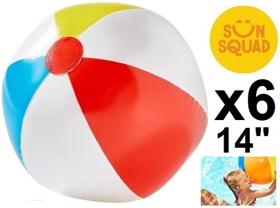 6 sun squad classic inflatable beach ball - 14" diameter - multi-colour