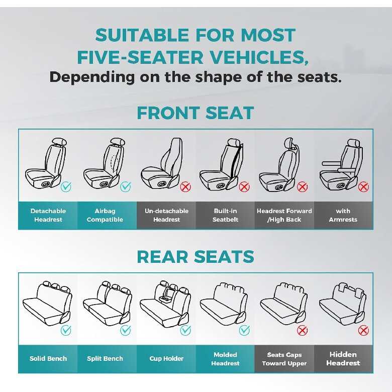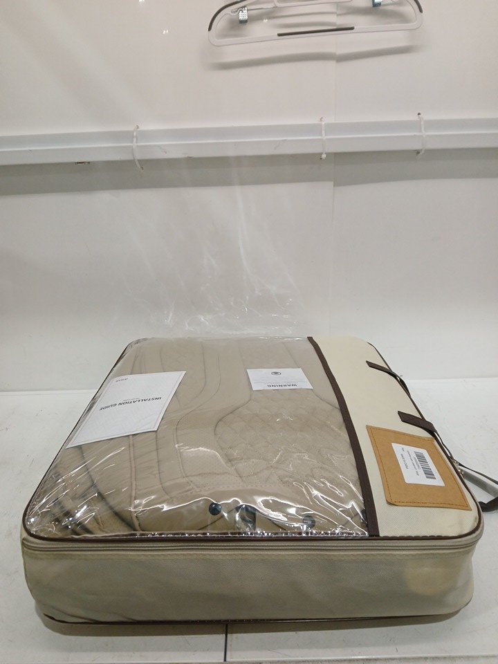 FEINEPRO FUAX Leather Car Seat Covers Full Set FRONT AND REAR - FITS MOST Cars, SUV AND SedanS - BEIGE TAN