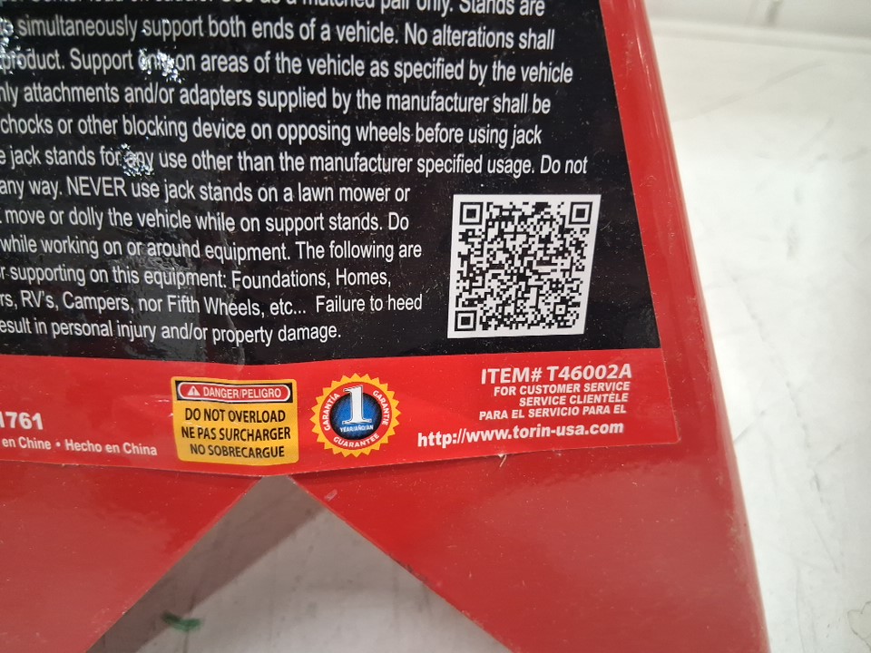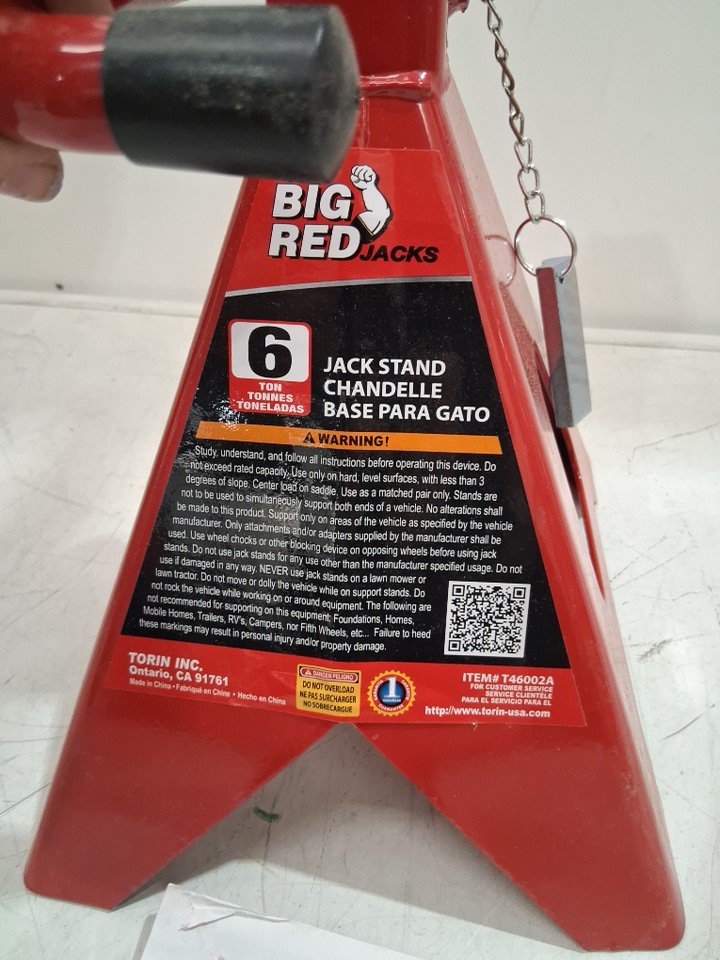 TORIN BIG RED STEEL JACK STANDS / DOUBLE LOCKING & ADJUSTABLE HEIGHT - 6 TON - 15-3/8"- 23-13/16" - RED/BLACK (MODEL: T46002A)