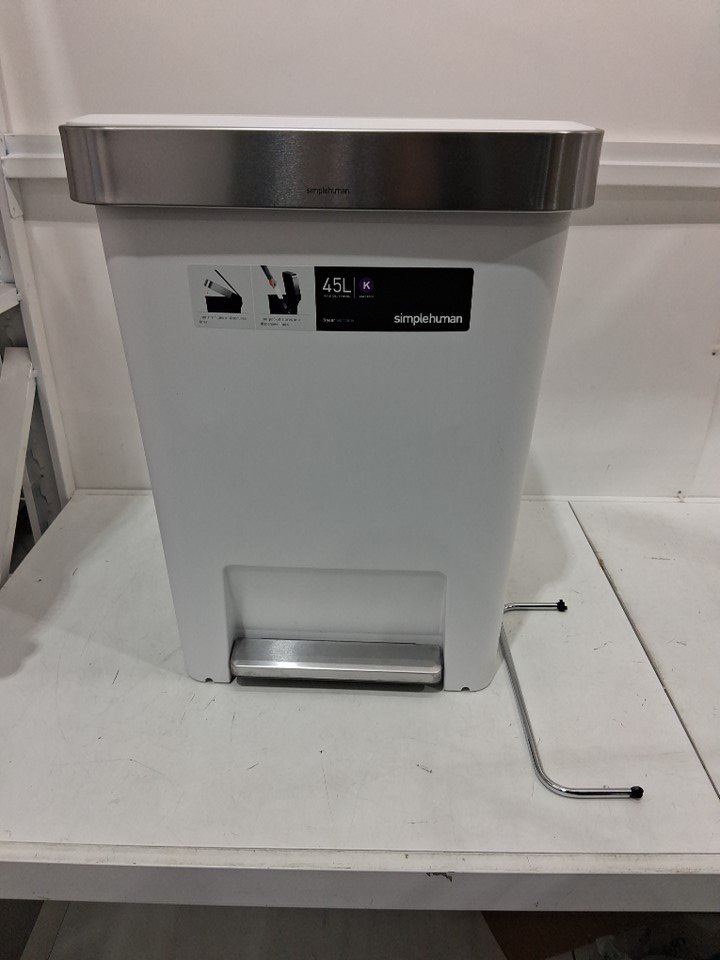 simplehuman Rectangular Kitchen Step Trash Can with Soft-Close Lid - 45l - white