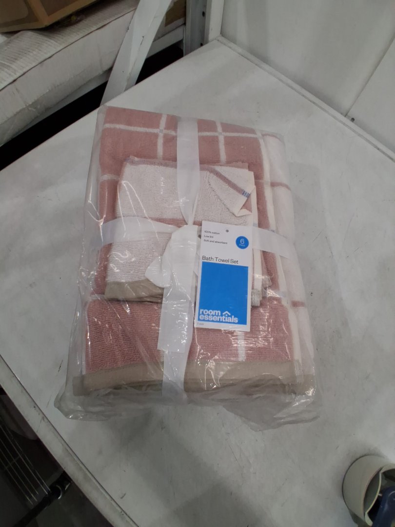 6pc Room Essentials Bath Towel Bundle Set -pink/peach / white striped